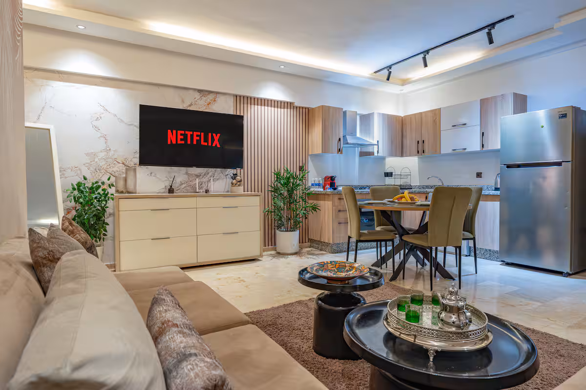 Découvrez ce charmant appartement moderne situé au cœur de Marrakech, dans l’un des emplacements les plus pratiques de la ville. Idéal pour les familles et les voyageurs souhaitant être proches de tout, ce logement se trouve à 2 minutes à pied de la Gare ferroviaire, vous offrant un accès rapide depuis et vers l’aéroport ou d’autres villes du Maroc.