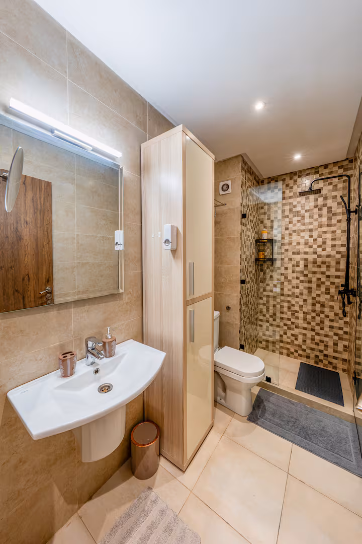 L’appartement se compose d’une chambre confortable, d’un salon moderne, d’une cuisine entièrement équipée, d’une salle de bain fonctionnelle et d’une connexion Wi-Fi rapide, idéale pour travailler ou streamer sans interruption.